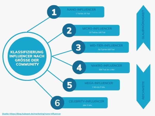 Je nach Follower:innenzahlen werden Influencer:innen eingeteilt in:10